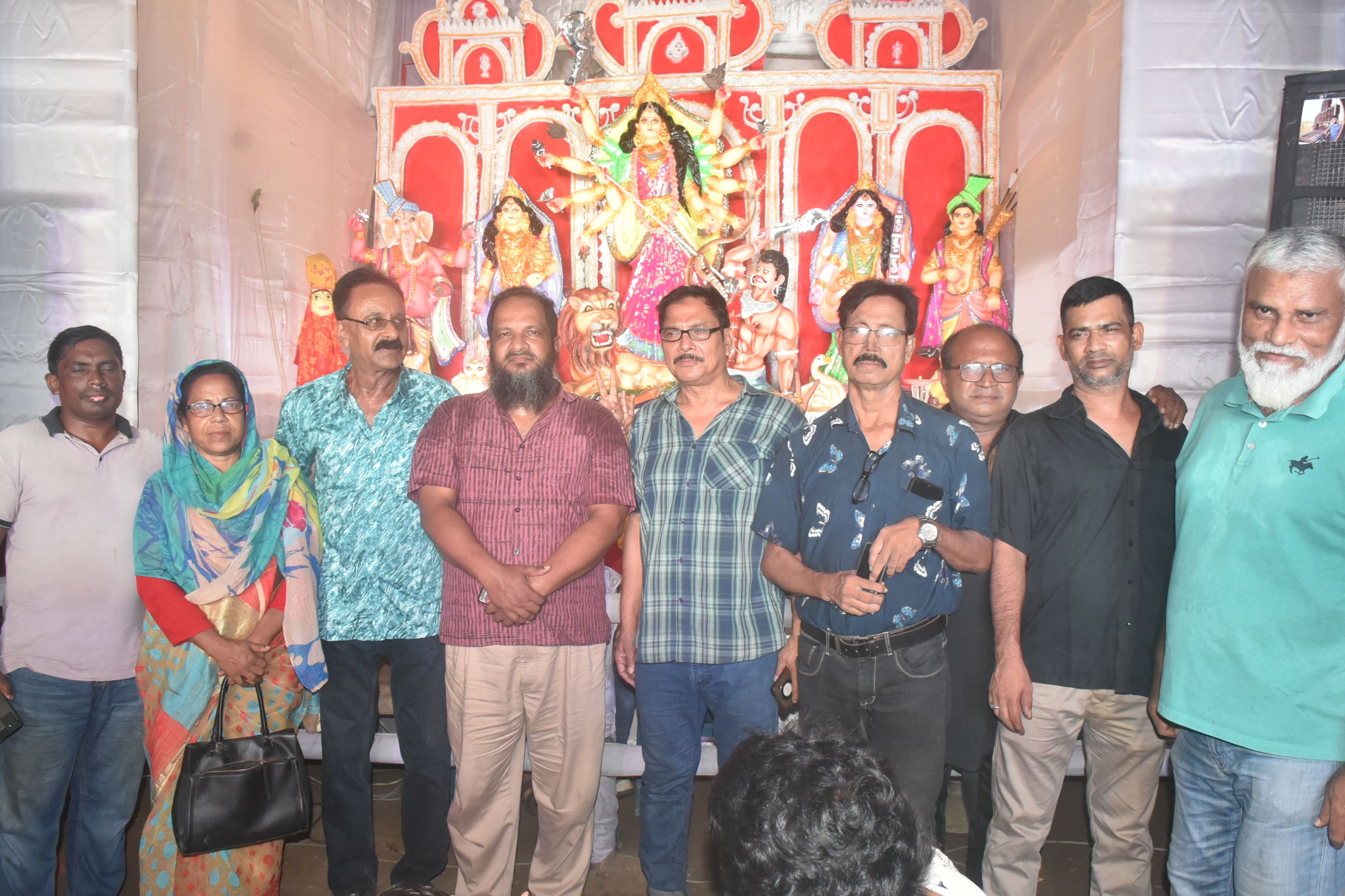 জাতীয় পার্টির নেতাদের মন্ডপ কমিটির পক্ষে অভ্যর্থনা জানান আশিষ কুমার ব্যানার্জী বাপ্পীসহ অন্যান্যরা।