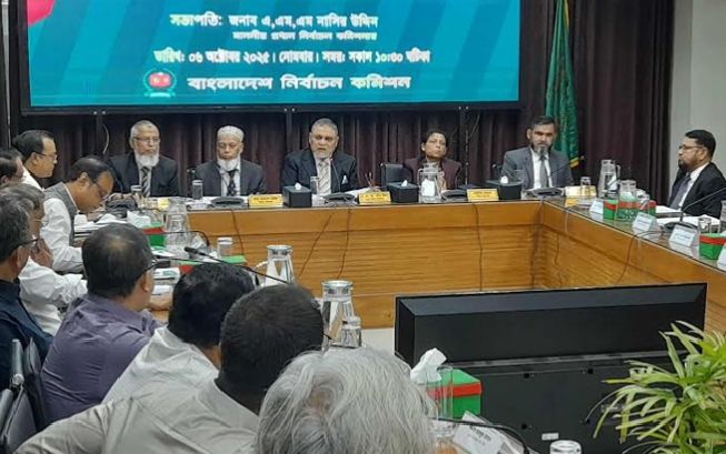সিইসি এ. এম. এম. নাসির উদ্দিনের সভাপতিত্বে সংলাপে চার নির্বাচন কমিশনার ও ইসি সচিবালয়ের ঊর্ধ্বতন কর্মকর্তারা অংশ নেন।
