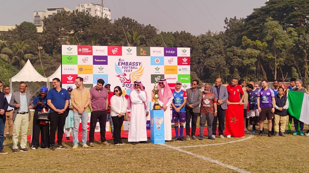 The sixth edition of the Embassy Football Fest is being hosted in partnership with the Armed Police Battalion (APBn). In his welcome address, Additional Inspector General of APBn, Md. Fakir Ali, expressed pride in hosting the event, stating that bringing together diplomatic missions from various countries on their grounds was a matter of great honor. He emphasized that fostering friendship through sports remains the core objective of the festival.
