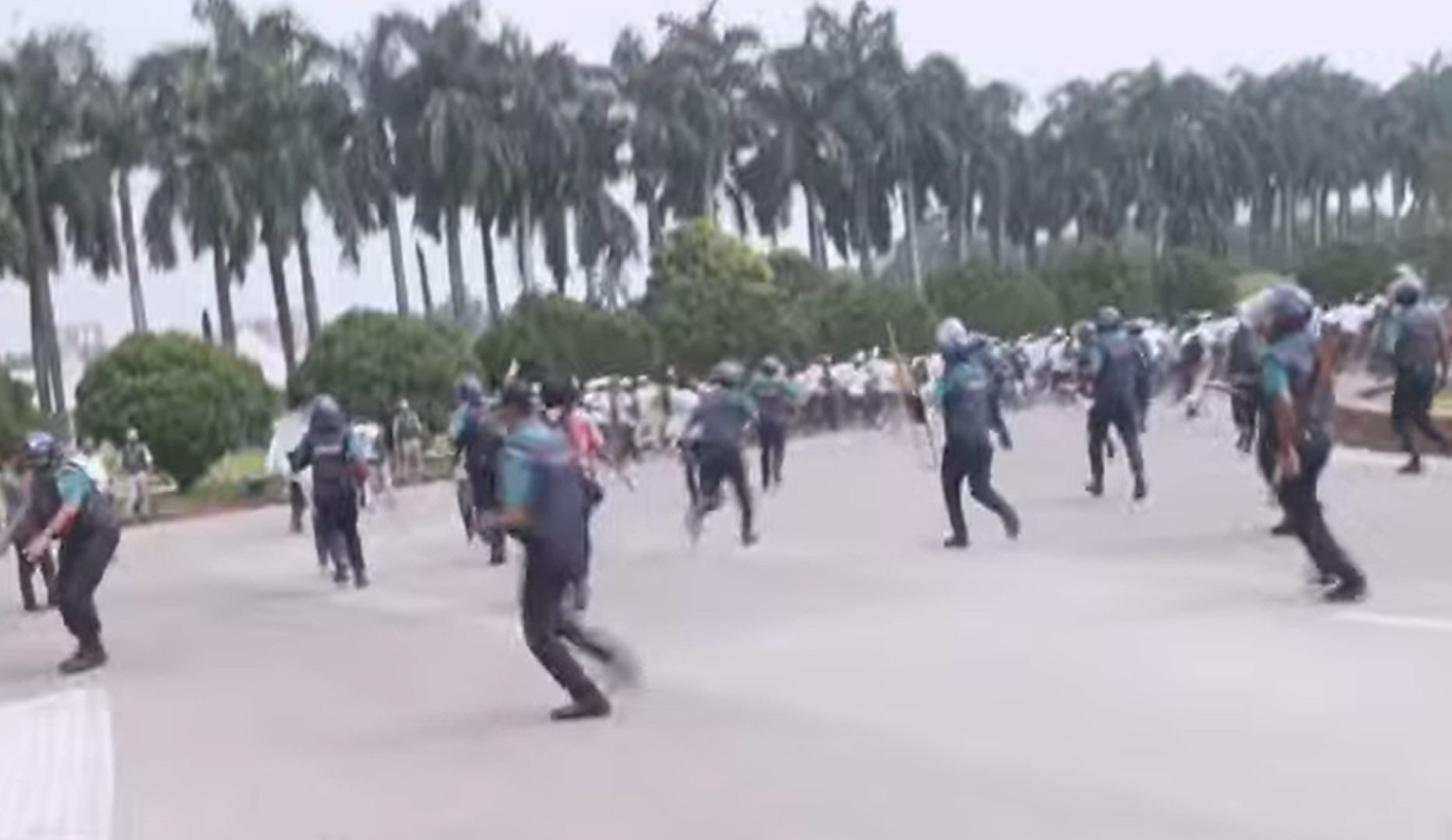 নিউজ ডেস্ক : জাতীয় সংসদ ভবনের দক্ষিণ প্লাজায় ‘জুলাই যোদ্ধাদের’ সঙ্গে পুলিশের ধাওয়া-পাল্টাধাওয়ার ঘটনা ঘটেছে। এ সময় আন্দোলনকারীদের লক্ষ্য করে পুলিশ টিয়ার শেল নিক্ষেপ ও লাঠিপেটা করেছে। এ ঘটনায় নতুন কর্মসূচি ঘোষণা করেছে জুলাই যোদ্ধারা।