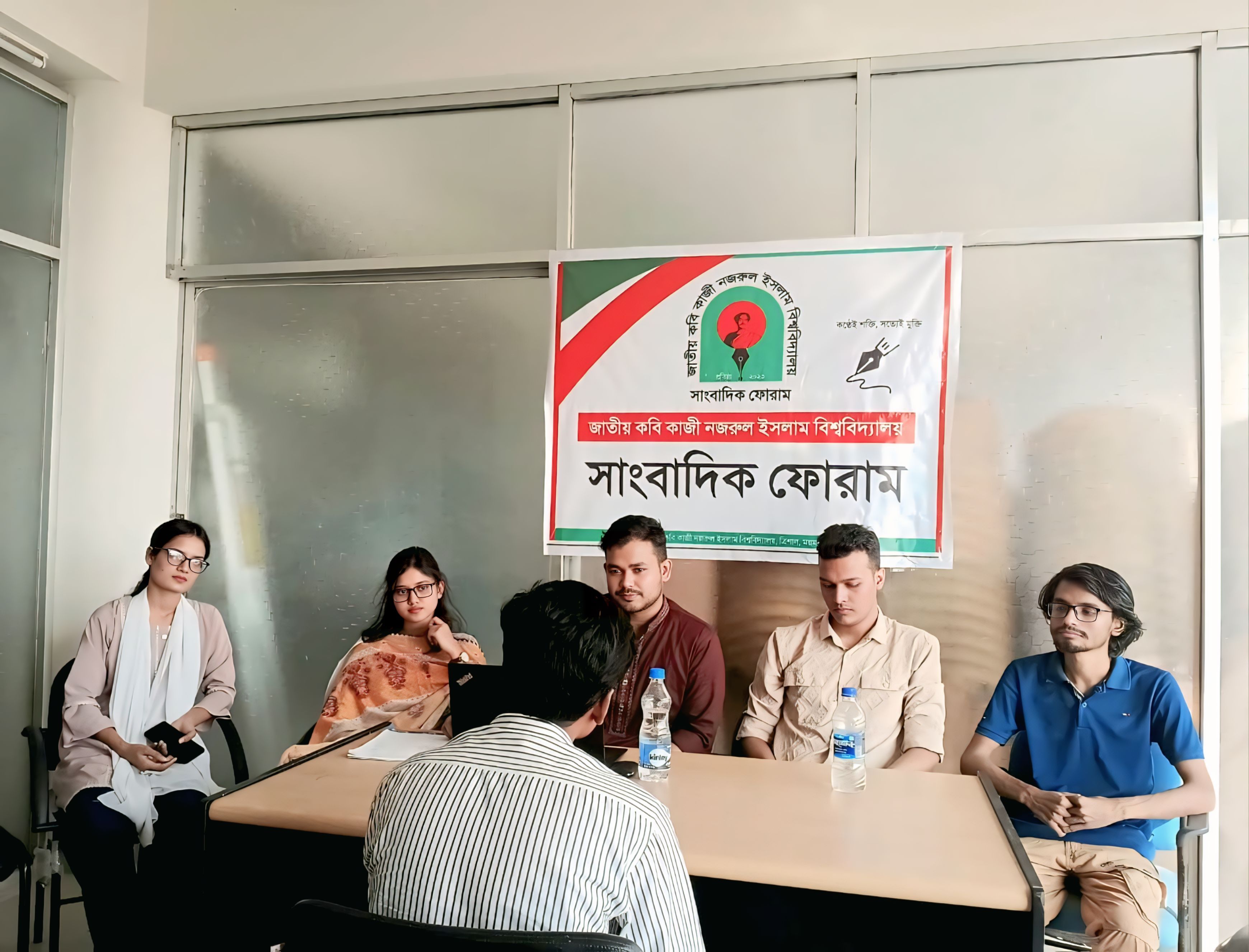 জাতীয় কবি কাজী নজরুল ইসলাম বিশ্ববিদ্যালয় সাংবাদিক ফোরাম বিশ্ববিদ্যালয় সাংবাদিকদের একটি অন্যতম স্বনামধন্য ও নিরপেক্ষ সংগঠন। নিষ্ঠার সঙ্গে দীর্ঘদিন যাবৎ কাজ করে যাওয়া এ সংগঠন অনুষ্ঠানভাবে স্বীকৃতি লাভ করে ২০২৩ সালের ১৮ সেপ্টেম্বর। সংগঠনটির সদস্যরা স্বাধীনভাবে ও নিষ্ঠার সঙ্গে দেশের বিভিন্ন জনপ্রিয় জাতীয় দৈনিক, টিভি চ্যানেল ও মাল্টিমিডিয়াগুলোতে কাজ করে চলেছে অবিরাম। বিশ্ববিদ্যালয়ে লেখালেখি, ফটো বা ভিডিওগ্রাফি এবং গ্রাফিক্স বা পোস্টার ডিজাইনের মাধ্যমে সাংবাদিকতা করতে আগ্রহী এমন নবীন শিক্ষার্থীদের প্রশিক্ষণ দিয়ে সাংবাদিক ফোরামের সাথে যুক্ত করে নতুন দিগন্ত উন্মোচনে ভূমিকা রাখে এই সংগঠন। বিভিন্ন জাতীয় দৈনিক, টিভি চ্যানেল এবং মাল্টিমিডিয়ায় নির্ভীকভাবে ও সত্য প্রকাশের একাগ্রতা নিয়ে কাজ করে বস্তুনিষ্ঠ সংবাদ পরিবেশনের এ ধারা অব্যাহত রাখতেই সাংবাদিক ফোরামে প্রতিবছর অনুষ্ঠিত হয় এ সদস্য সংযুক্তি অনুষ্ঠান।