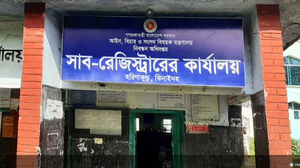 ঝিনাইদহ প্রতিনিধি : ঝিনাইদহের হরিণাকুন্ডু সাবরেজিস্ট্রি অফিসে জমি সরকারী ফি’র বাইরে অতিরিক্ত অর্থ আদায়ের অভিযোগ উঠেছে। দলিল লেখক সমিতির কথিত সভাপতি ওয়াজেদ আলী খার নেতৃত্বে একটি চক্র দীর্ঘদিন ধরে অফিসে রামরাজত্ব কায়েম করে বিপুল পরিমাণ অর্থ হাতিয়ে নিচ্ছেন।